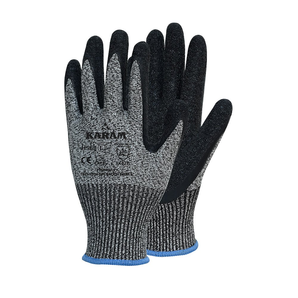 The HPPE / Glass Liner with Natural Latex Coating HS 68 is designed for maximum protection and durability. Its dense construction offers high resistance to abrasion, punctures, and tears, making it ideal for tough work environments. The glove features a unique black and white melange combination for enhanced aesthetics, ensuring both style and function. A natural rubber palm coating with a crinkle finish provides superior grip, even in wet or slippery conditions, while ensuring comfort during extended wear. Perfect for heavy-duty tasks, this glove delivers long-lasting performance and excellent protection in challenging industrial applications.